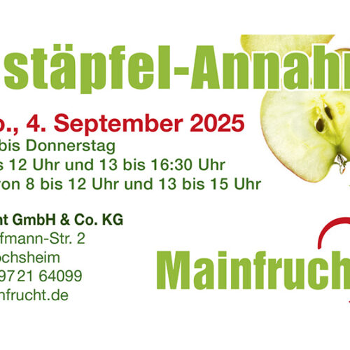 Mostäpfel-Annahme Ab Donnerstag, 4. September 2025 Montag bis Donnerstag von 8 bis 12 Uhr und 13 bis 16:30 Uhr…